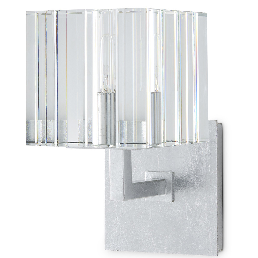 Бра серебряное с фактурным прозрачным абажуром Optical Crystal