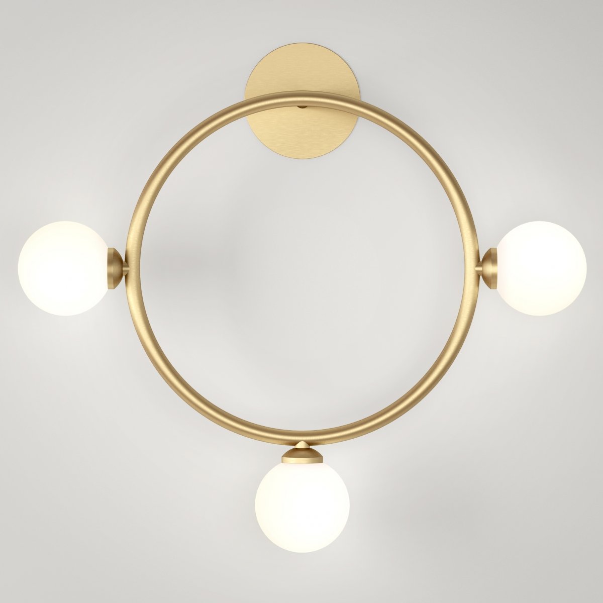 БРА ARETI CIRCLE WALL из коллекции ATELIER ARETI имеет округлую форму и три стеклянных матовых шаровидных плафона, расположенных на равноудаленном расстоянии друг от друга. Представлена в золотом цвете. Модель эффектно впишется в окружающую обстановку и станет одним из главных декоративных элементов интерьера.