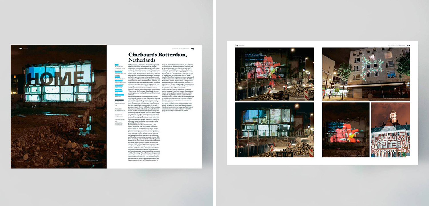 Bright представляет богатый выбор из 38 инновационных проектов, задающих тенденции в творческом использовании света. Включенная работа была реализована как в коммерческом, так и в культурном контексте по всему миру.