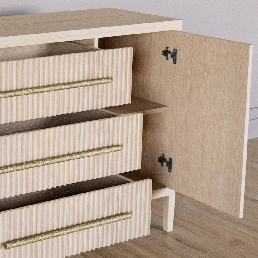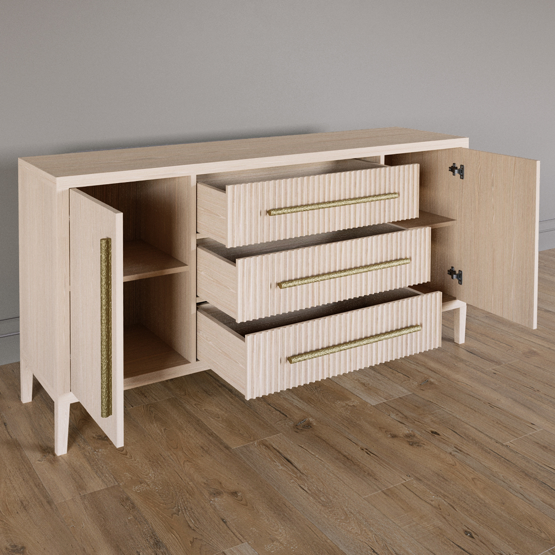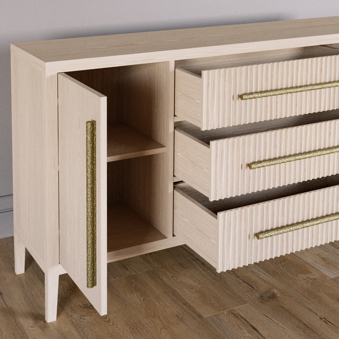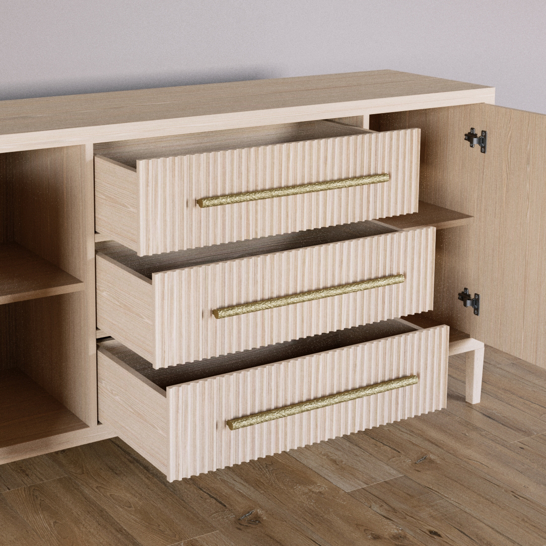Буфет Primo с тремя ящиками и двумя фасадами Светлый дуб