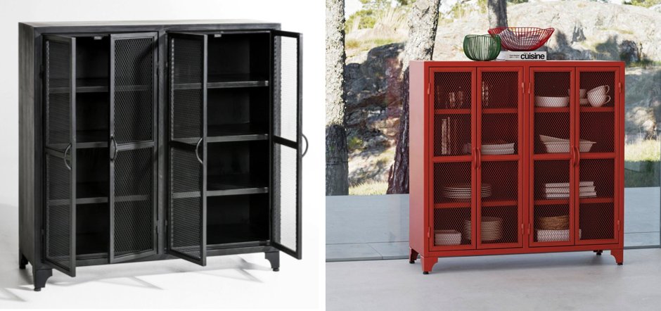 Купить буфет в стиле Лофт металлический Industrial Grid Buffet Черный – можно для хранения посуды, столовых приборов и других кухонных принадлежностей.