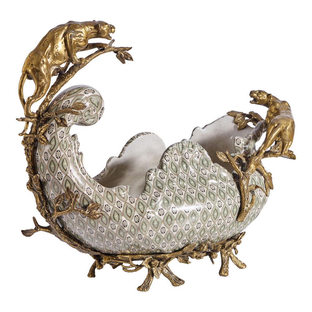 Чаша для фруктов из фарфора бронзовыми фигурками леопардов Eden Garden