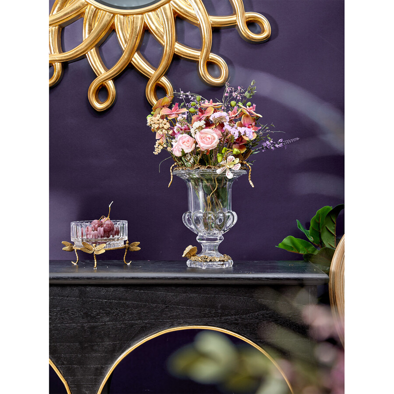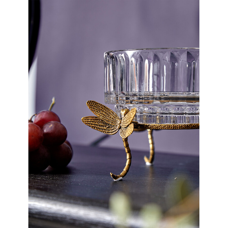 Чаша из прозрачного стекла на бронзовых ножках в виде стрекоз Eden Garden