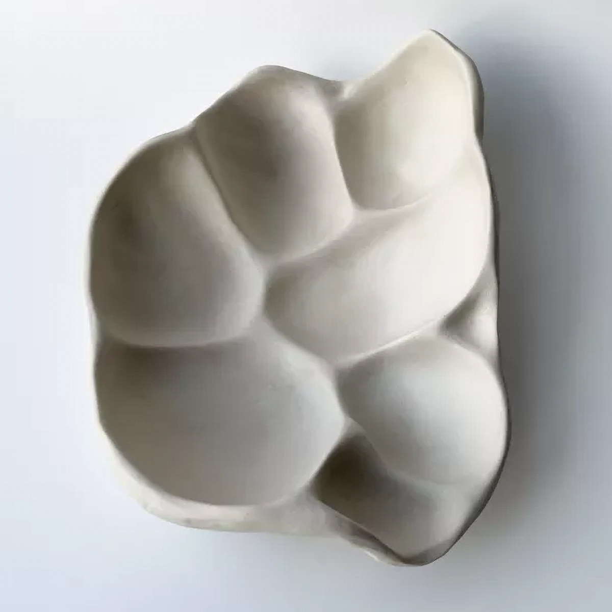 Как и другие работы этой серии, чаша вдохновлена выветриванием горной породы, поэтому изделие очень фактурное, тактильное. В зависимости от освещения и ракурса, можно «играть» с рисунком рельефа. Это позволяет грамотно встраивать объект в интерьер, в зависимости от того, хотите ли вы создать на нем акцент или дополнить общее настроение. Возможно использование в качестве декоративного объекта, как блюдо для фруктов/орехов или подставку для украшений. Рекомендована ручная мойка без использования агрессивных моющих средств.