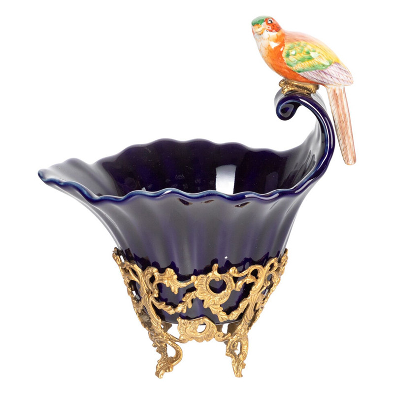 Чаша темно-синего цвета из фарфора с разноцветной птичкой Eden Garden porcelain and bronze