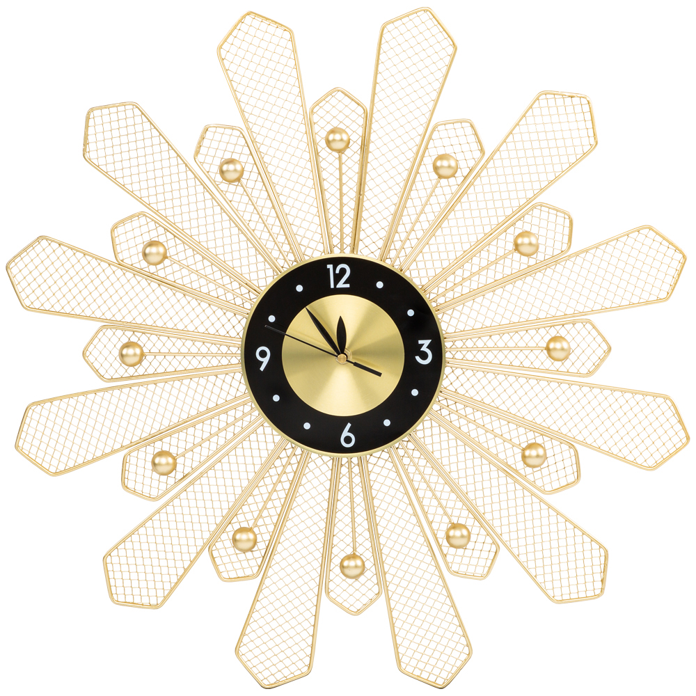 Часы настенные из металла в виде солнца с чёрным циферблатом Mirror Tower Clock