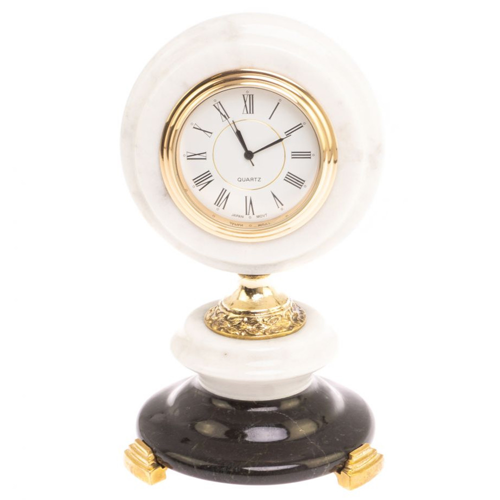Часы настольные бронзовые из натуральных камней Мрамор и Змеевик Stone Clock