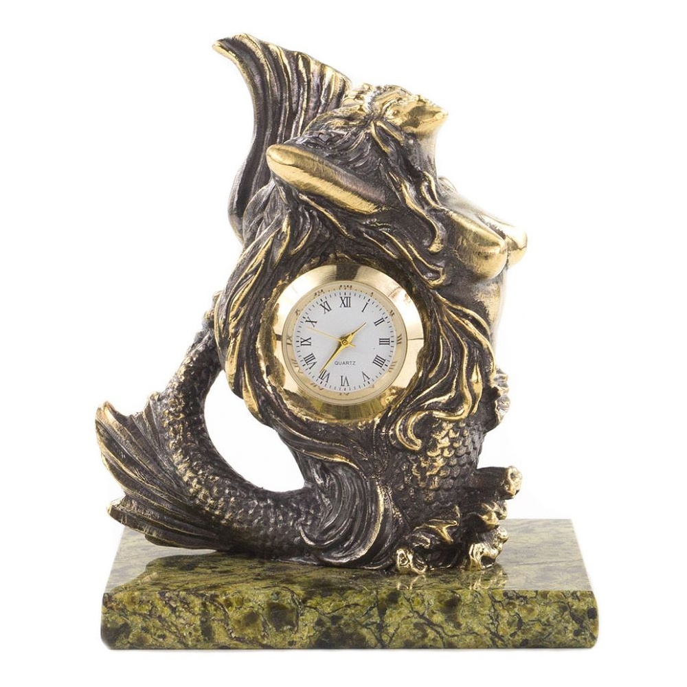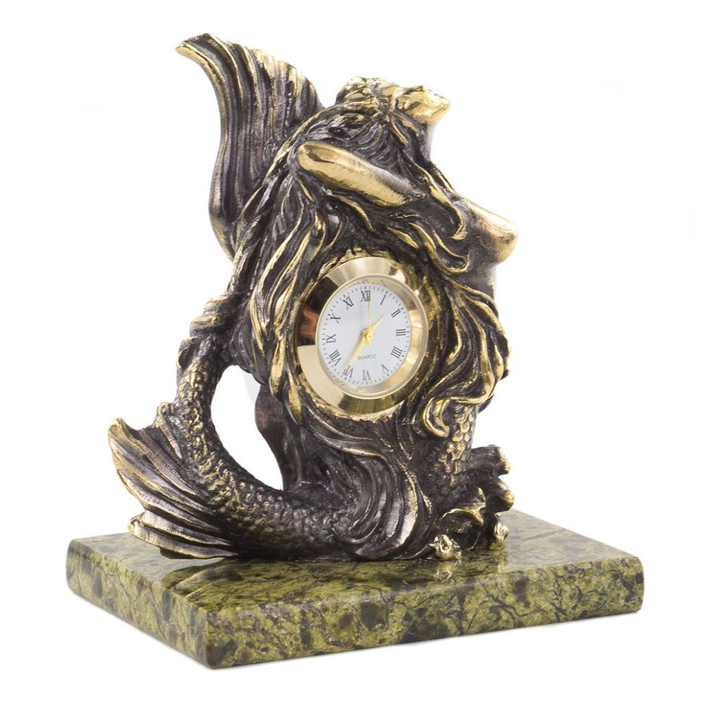 Часы настольные бронзовые в виде русалочки из натурального камня Змеевик Mermaid Stone Clock