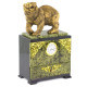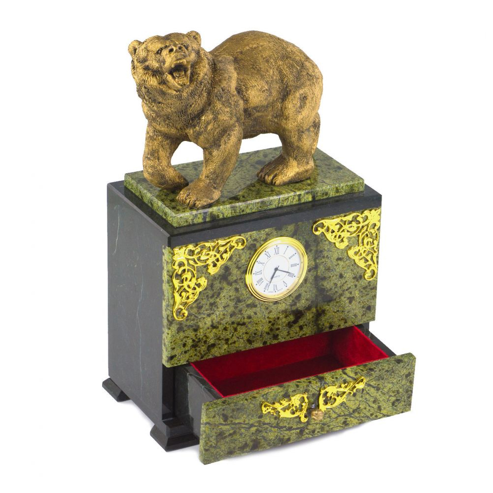 Часы настольные с декором в виде медведя и выдвижным ящиком из натурального камня Змеевик Bear Stone Clock