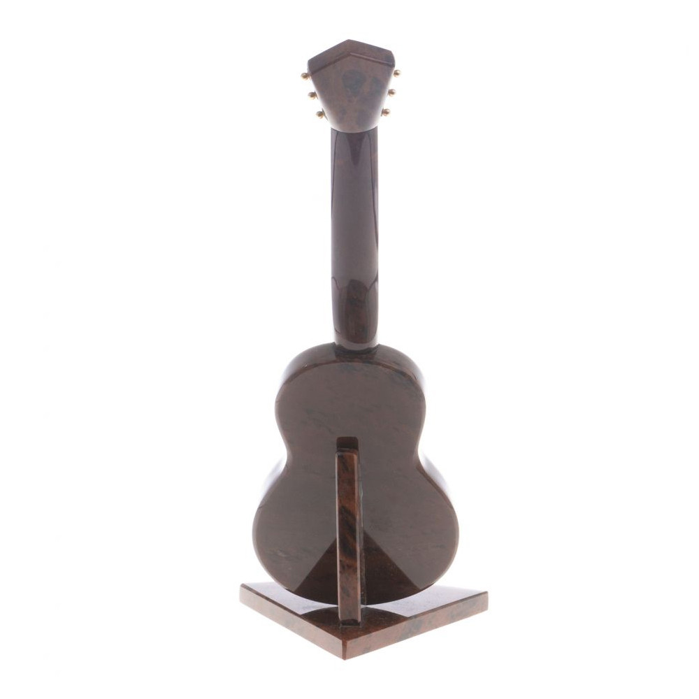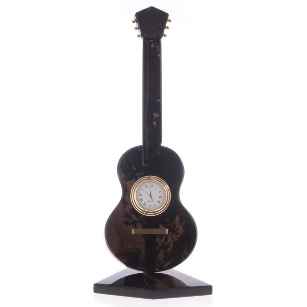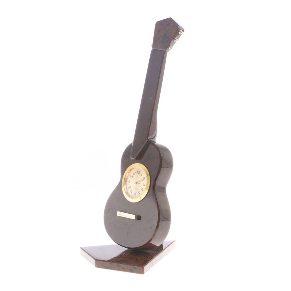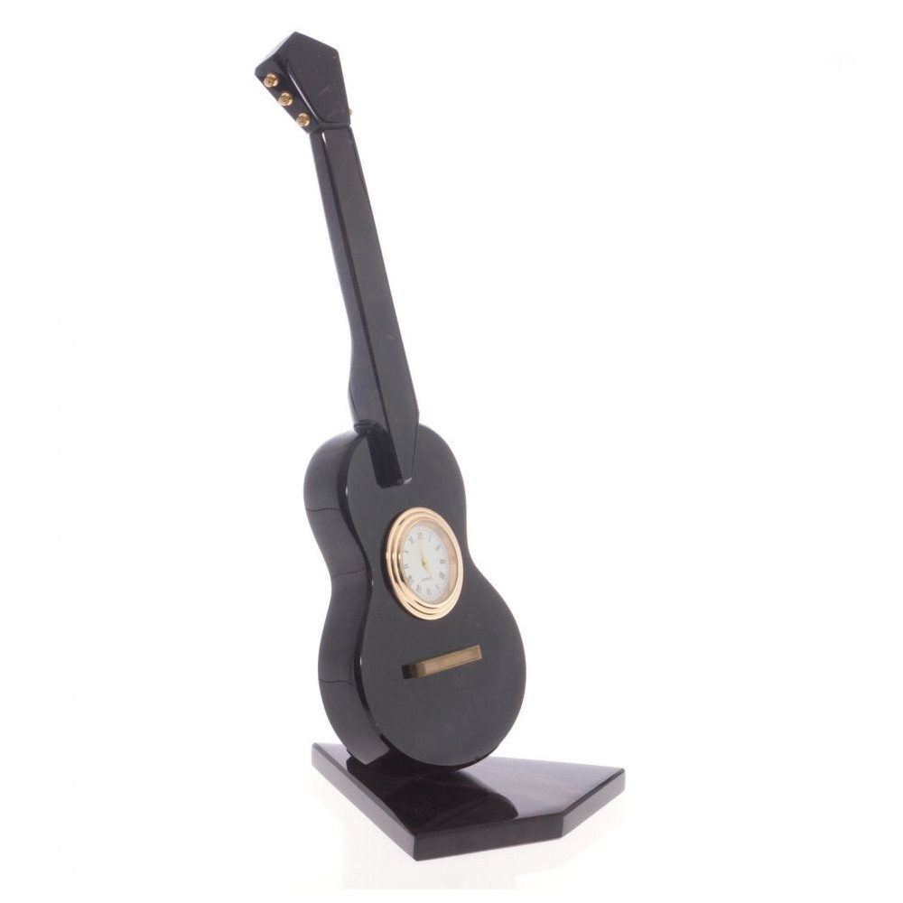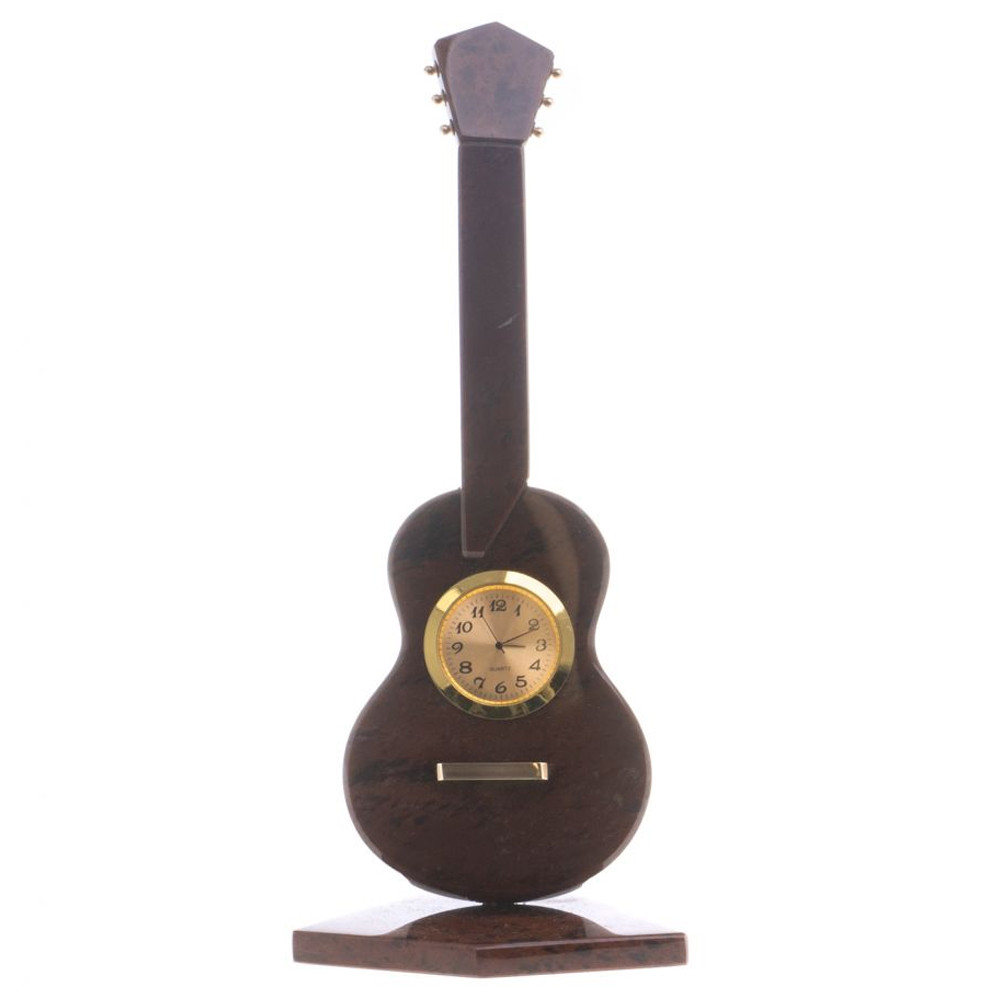 Часы настольные в виде гитары из натурального камня Обсидиан Stone Clock