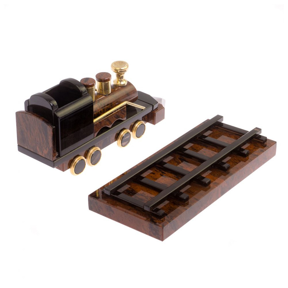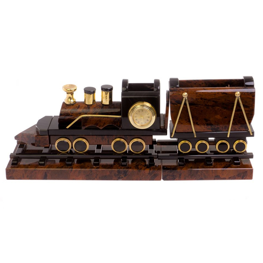 Часы настольные в виде паровоза из натурального камня Обсидиан Train Stone Clock