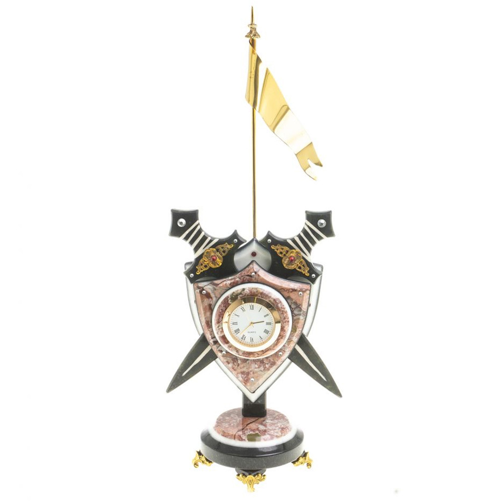 Часы настольные в виде щита с флагом из натуральных камней Змеевик и Креноид Stone Clock