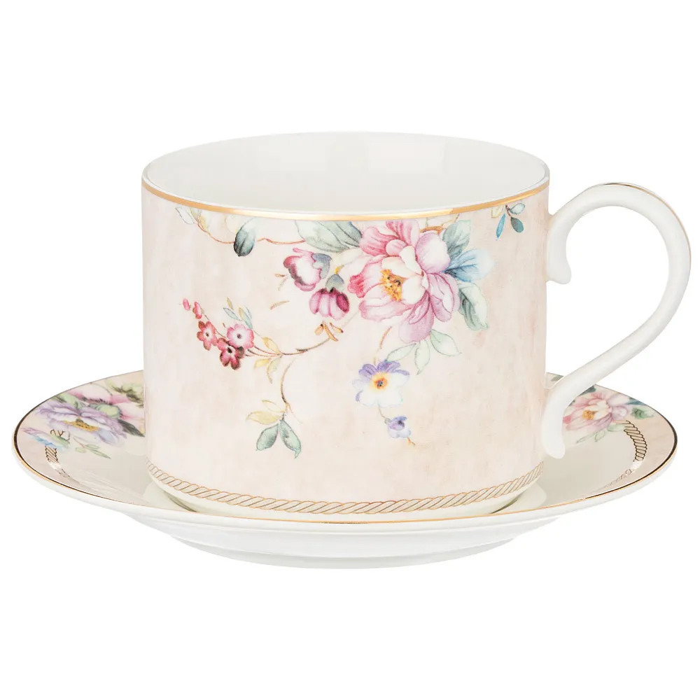 Чайная пара из фарфора с цветочным принтом 300мл Flower Porcelain Collection
