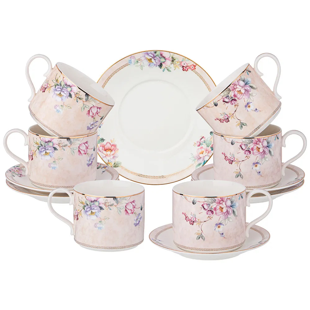 Чайный набор из фарфора с цветочным принтом на 6 персон 12 предметов Flower Porcelain Collection