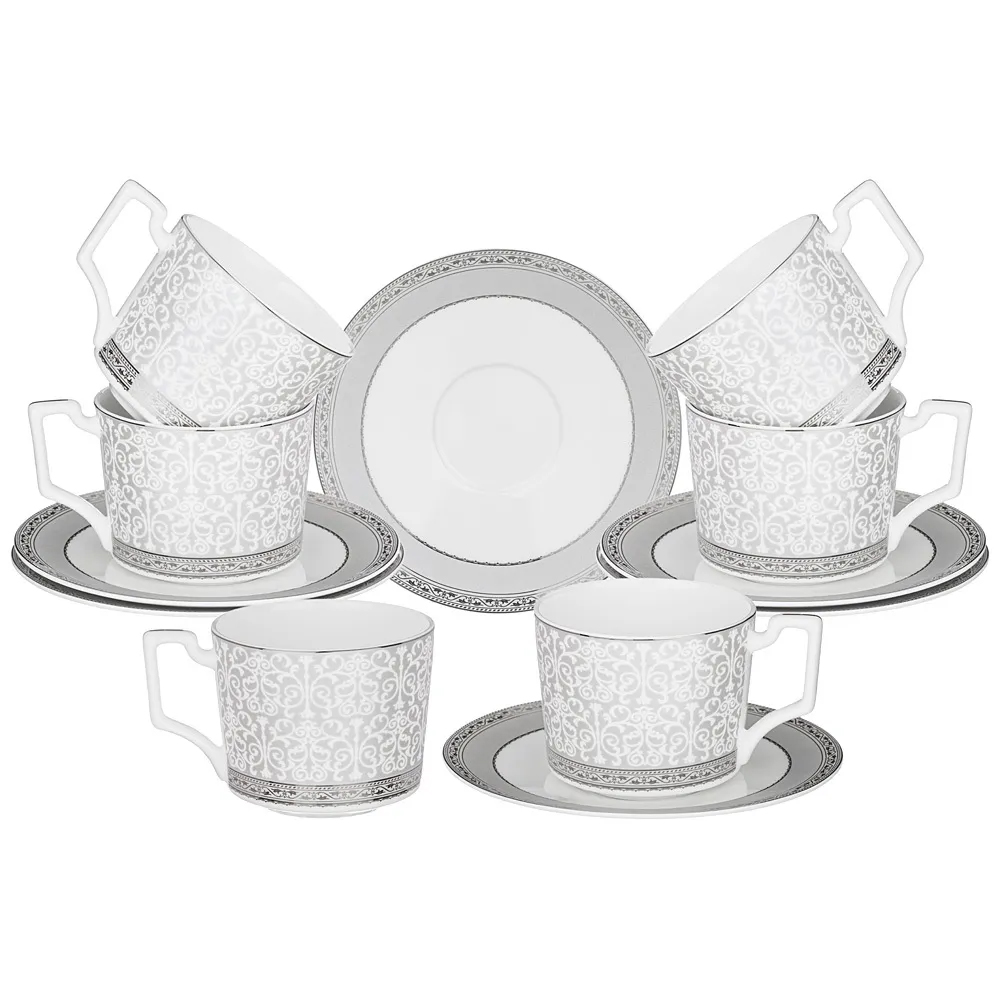 Чайный набор серо-белого цвета из фарфора на 6 персон 12 предметов 250 мл Royal Porcelain Collection