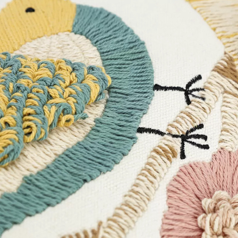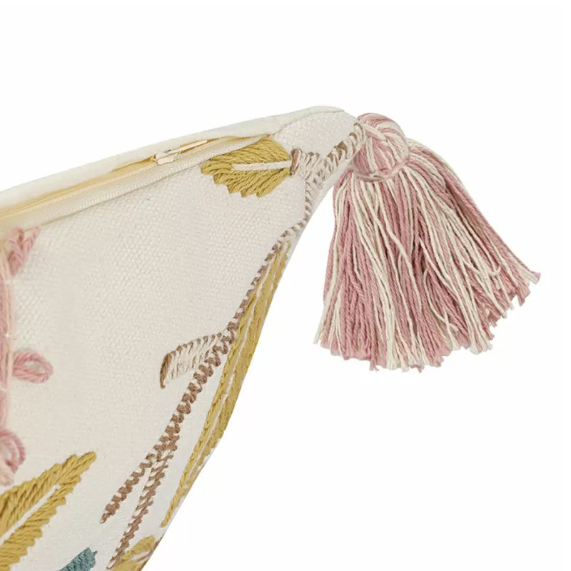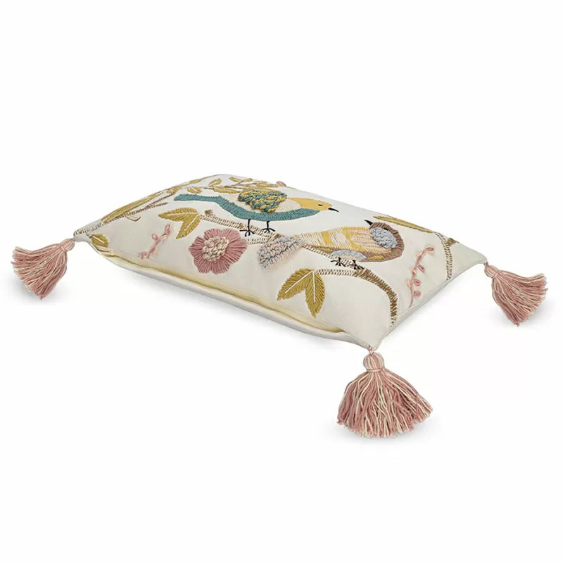 Чехол на подушку с кисточками и вышивкой птиц Ethnic mix Birds Rect