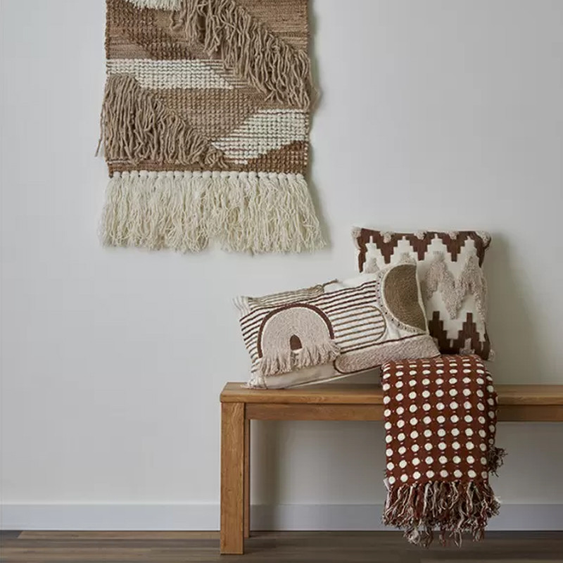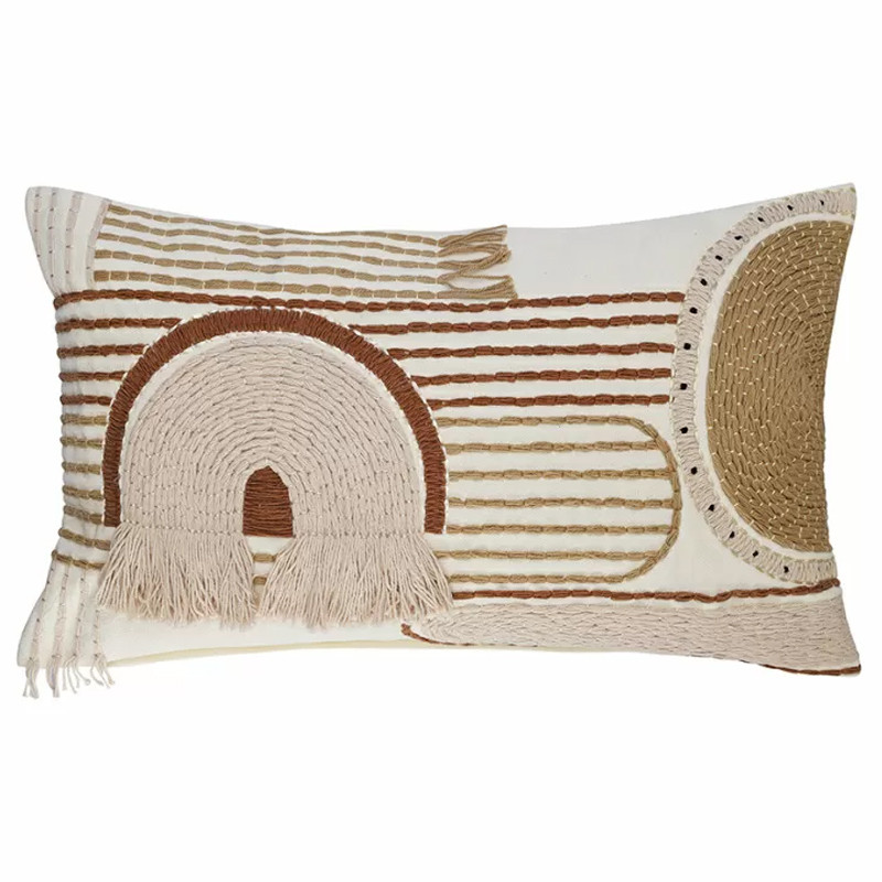 Чехол на подушку с вышивкой в виде геометрических узоров Beige Calista Rect
