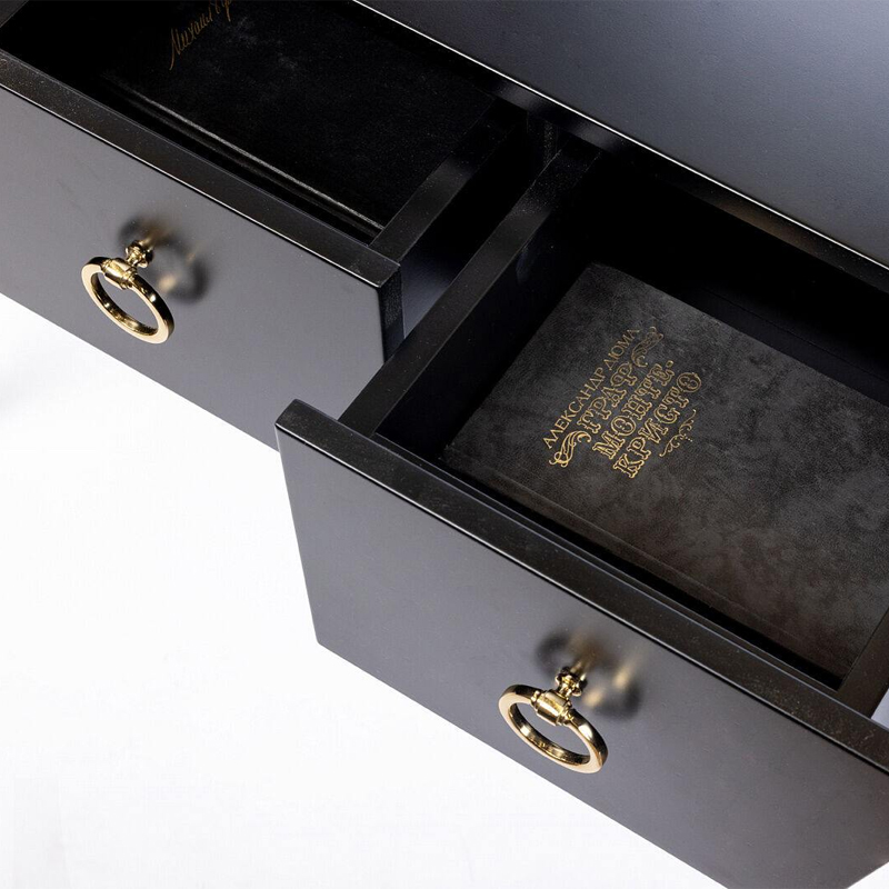 Купить черную консоль Сontemporary Art Deco можно для проведения деловых переговоров, ведь изделие создает атмосферу серьезности и настраивает на рабочий лад. Черный цвет также символизирует власть и авторитет, поэтому мебель может стать прекрасным выбором для кабинета руководителя или места работы человека, занимающего высокую должность.