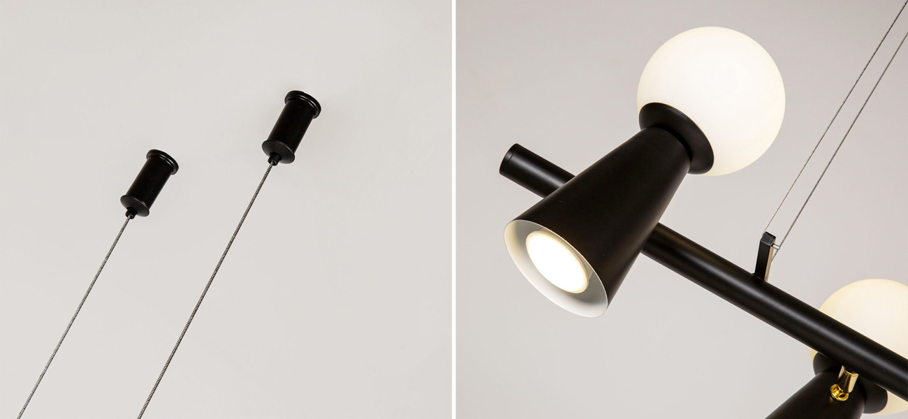 Черная люстра с поворотными плафонами 10 ламп KLAXONS