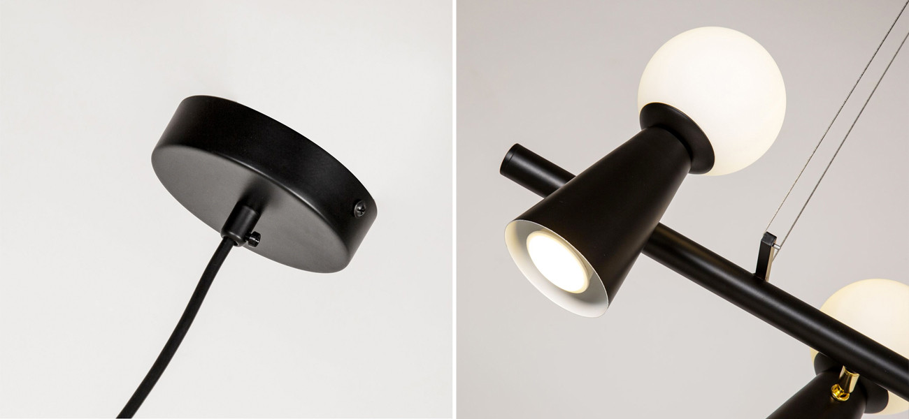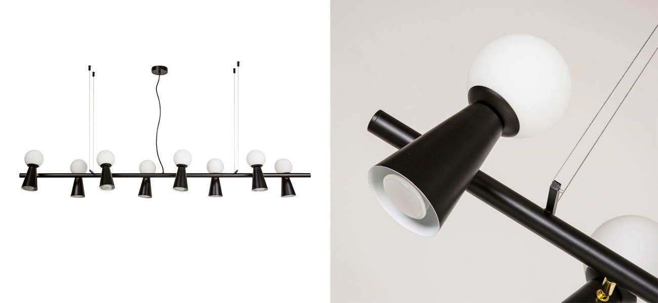 Черная люстра с поворотными плафонами 16 ламп KLAXONS