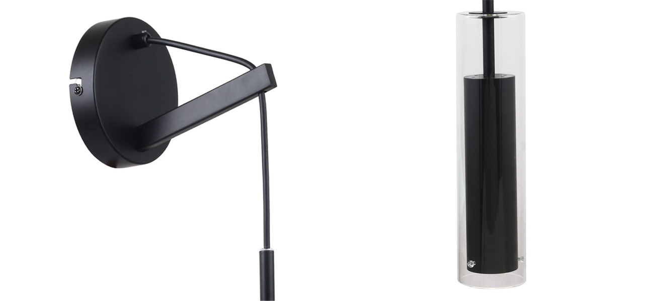 Каркас черного цвета, внешний плафон из прозрачного стекла, лампу можно менять.