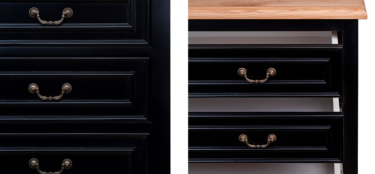 Купить черный комод из дуба Amelia black alder – это выбрать его за то, что он может вписаться во многие интерьеры, но особенно хорошо он будет смотреться в современных дизайнах, таких как минимализм, лофт или скандинавский.