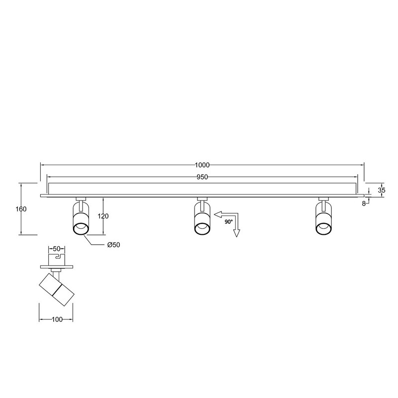 Черный потолочный светильник 3 спота с LED лентой Neoteric