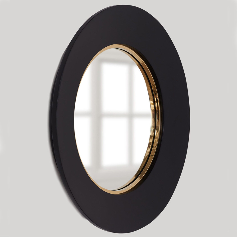 Чёрное настенное зеркало с золотым кантом Porunalia