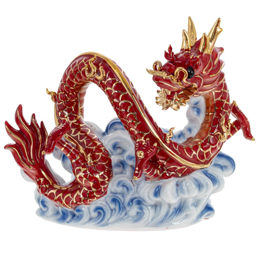 Декоративная фарфоровая статуэтка Китайский дракон на облаке Красный