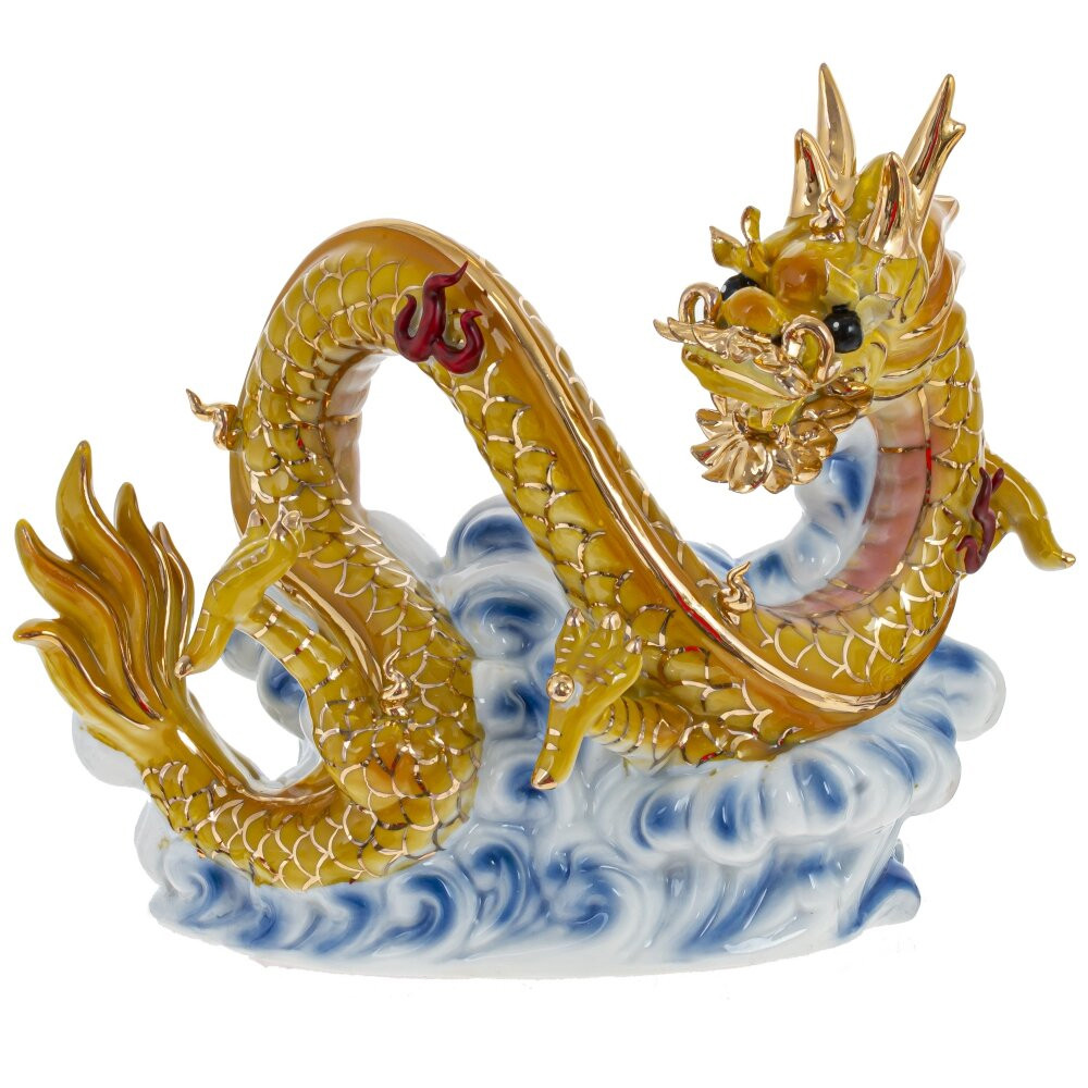 Декоративная фарфоровая статуэтка Китайский дракон на облаке Золото