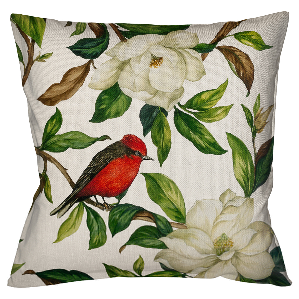 Декоративная подушка бежевая с изображением птиц и цветов Blooming Birds