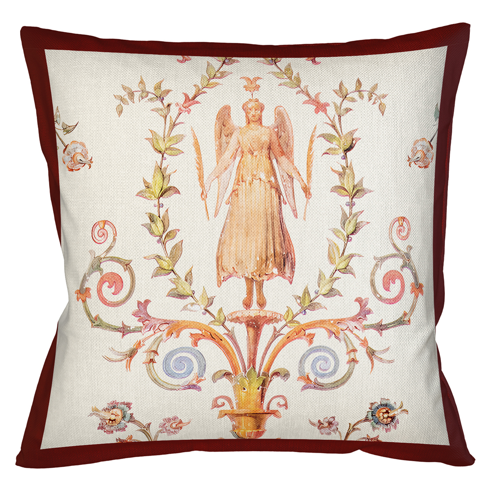 Декоративная подушка бежевая с растительным орнаментом Raffael Angel Beige Red Cushion