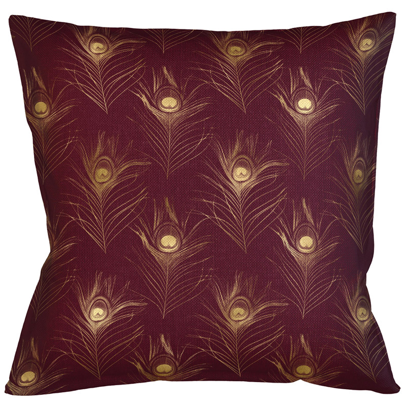 Декоративная подушка c принтом перо павлина Magic Feathers Бордовая