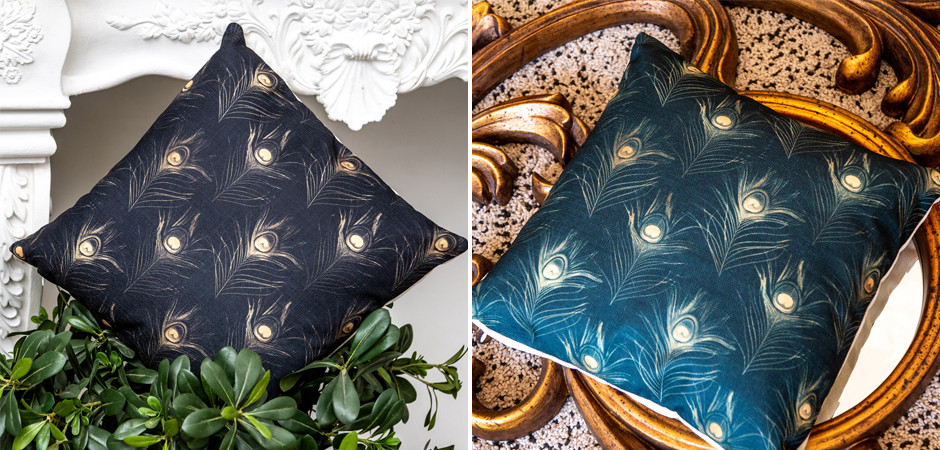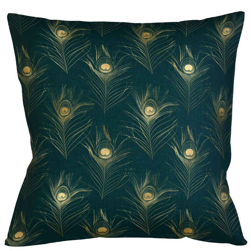 Декоративная подушка c принтом перо павлина Magic Feathers Изумрудная