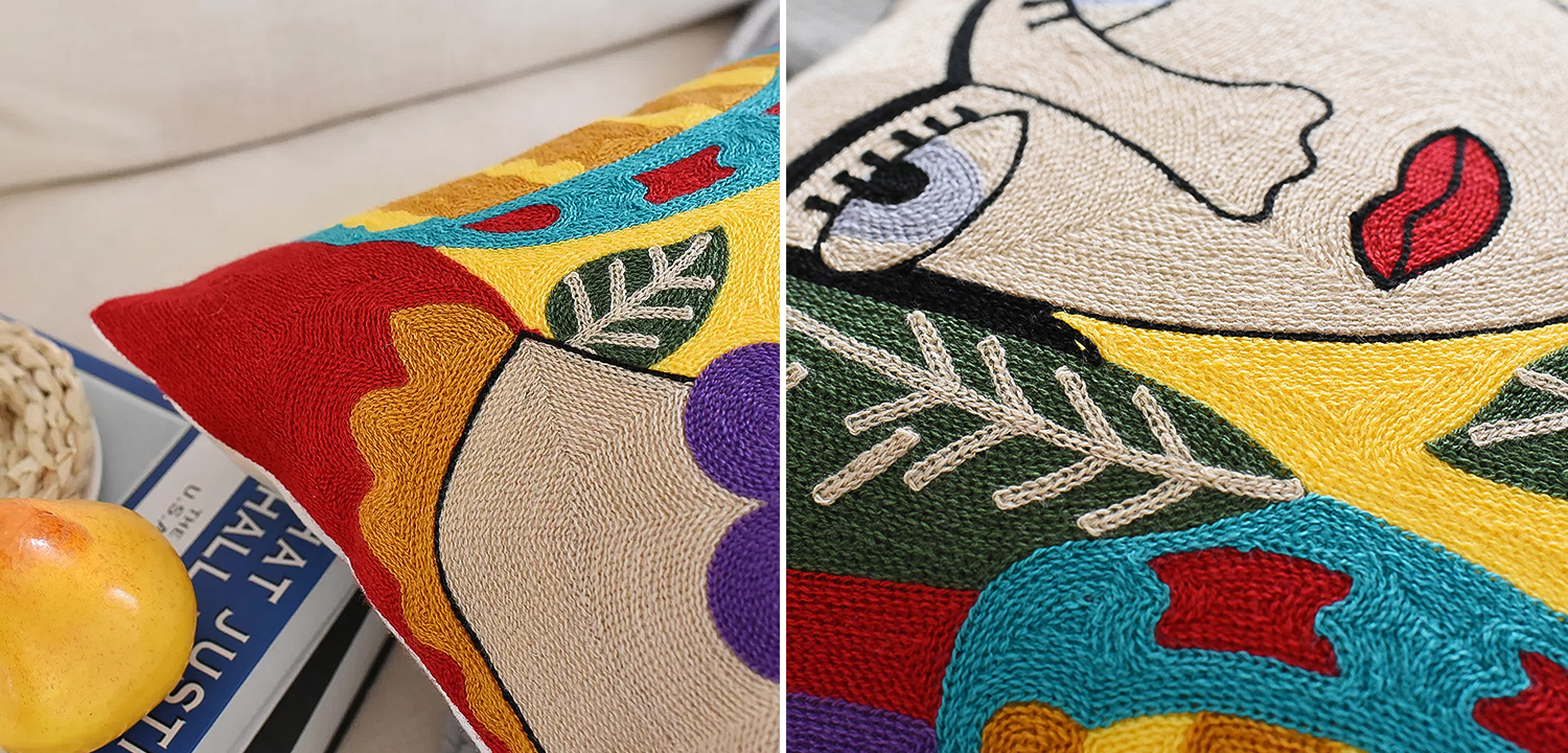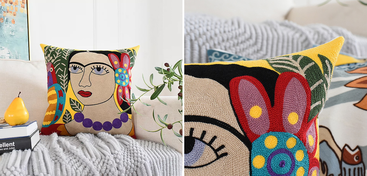 Декоративная подушка с вязаным изображением Frida Kahlo
