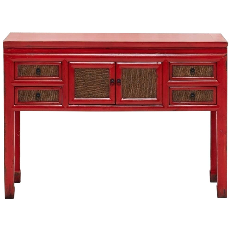 Деревянная консоль в китайском стиле с ящиками и дверцами красная Chinese Console Table