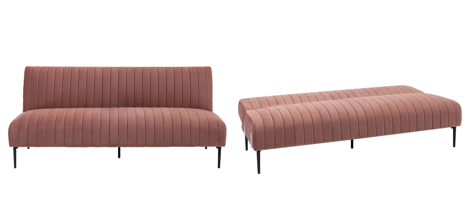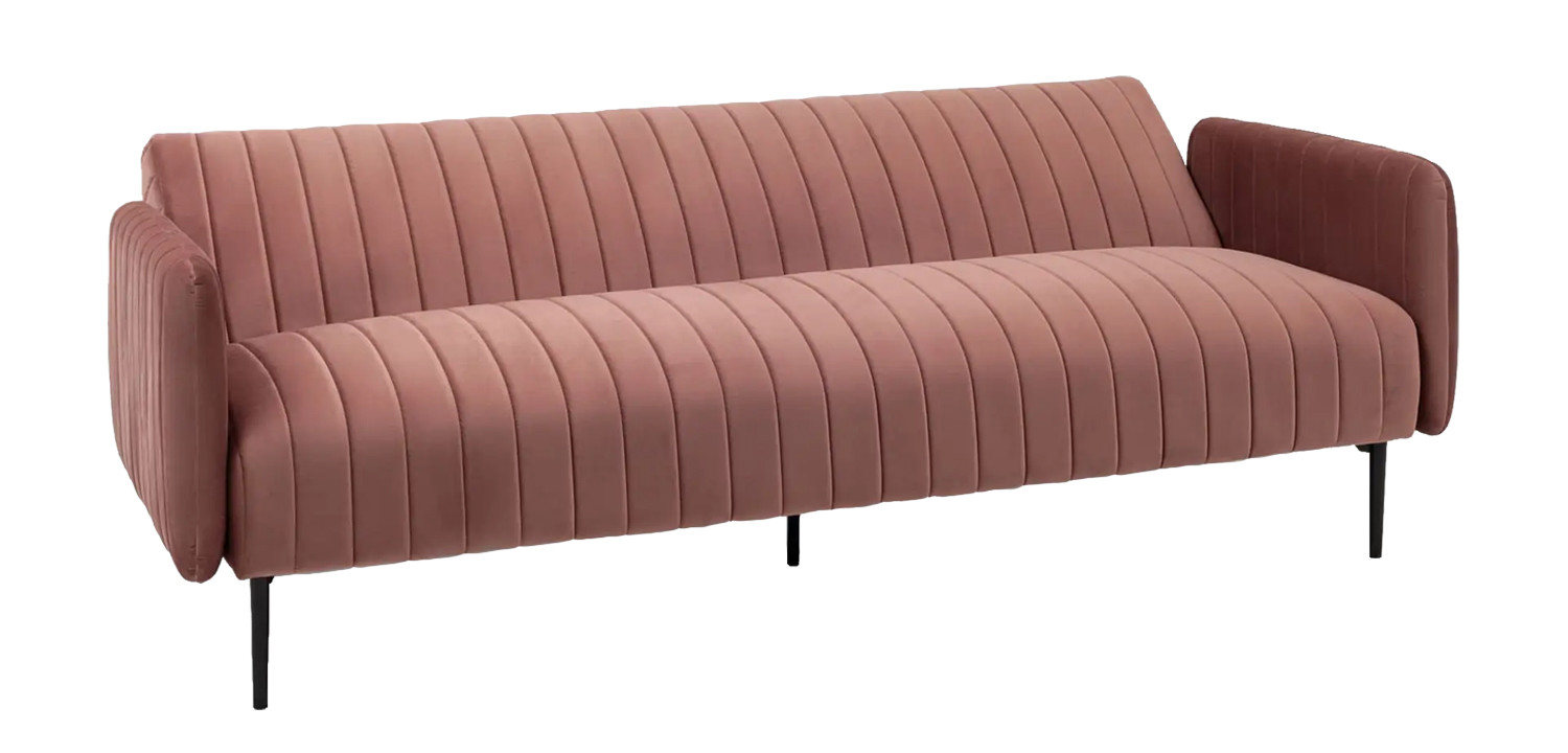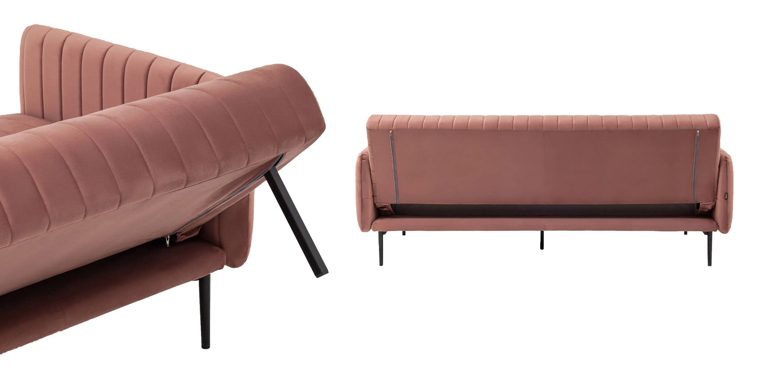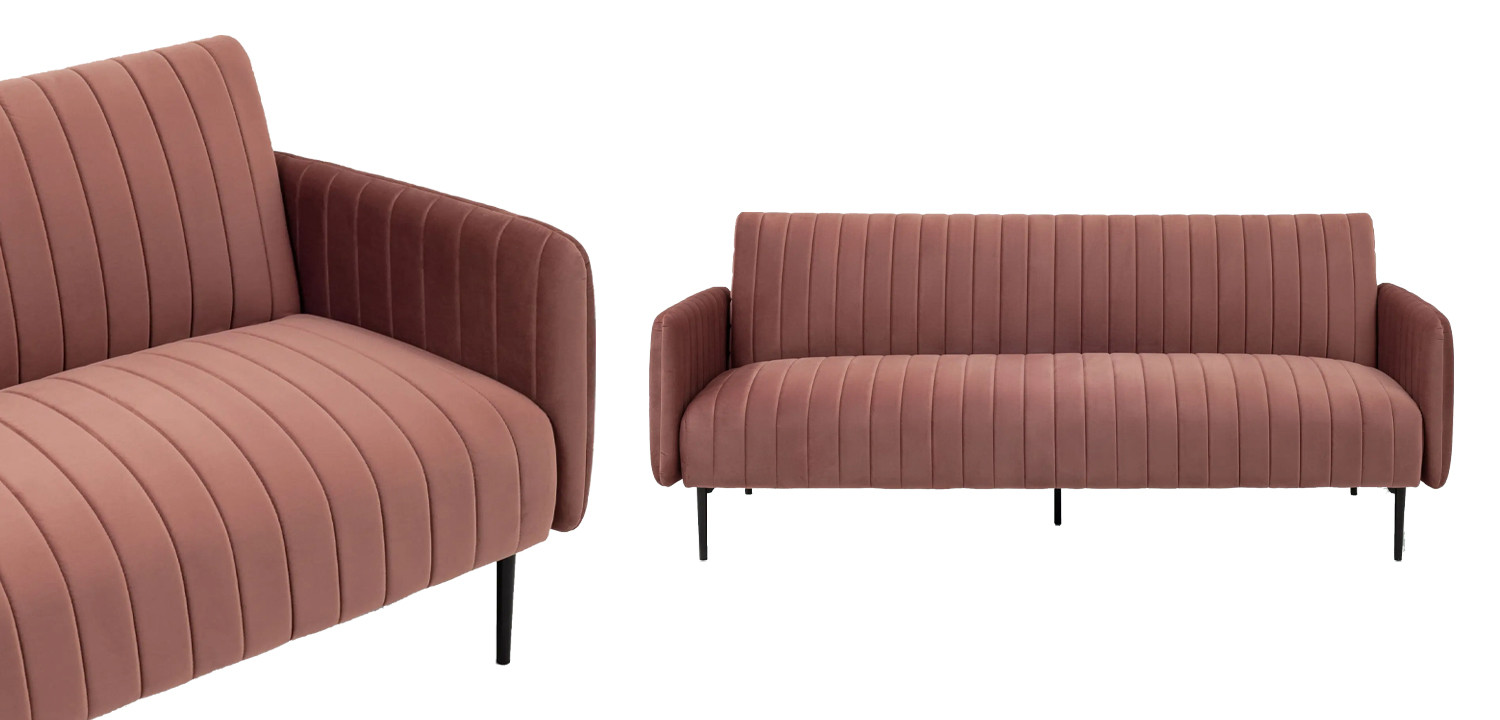 Купить пыльно-розовый диван Dilis из велюра удобно в том случае, когда нужно, чтобы мебель сочеталась со многими оттенками. Например, он хорошо сливается с серым, бежевым, мятным или золотистым цветом (для элегантного и современного вида).