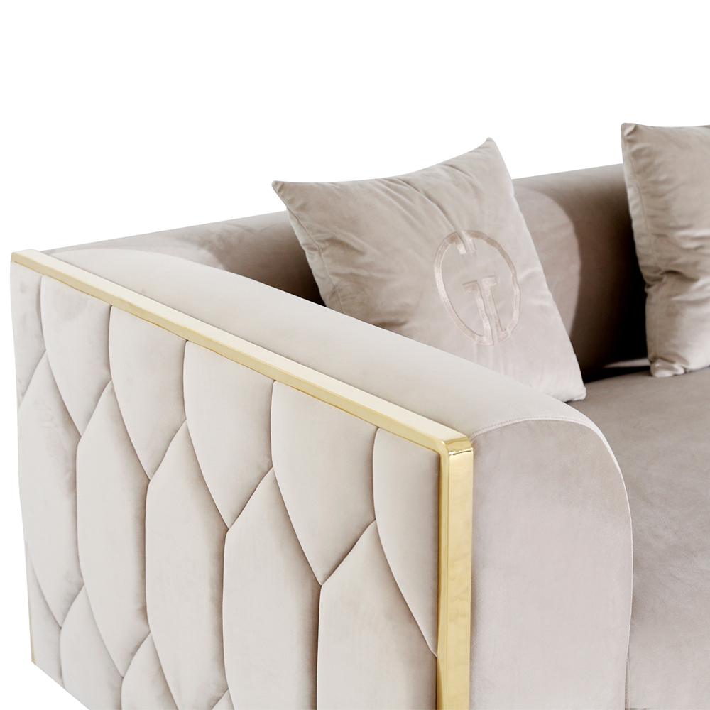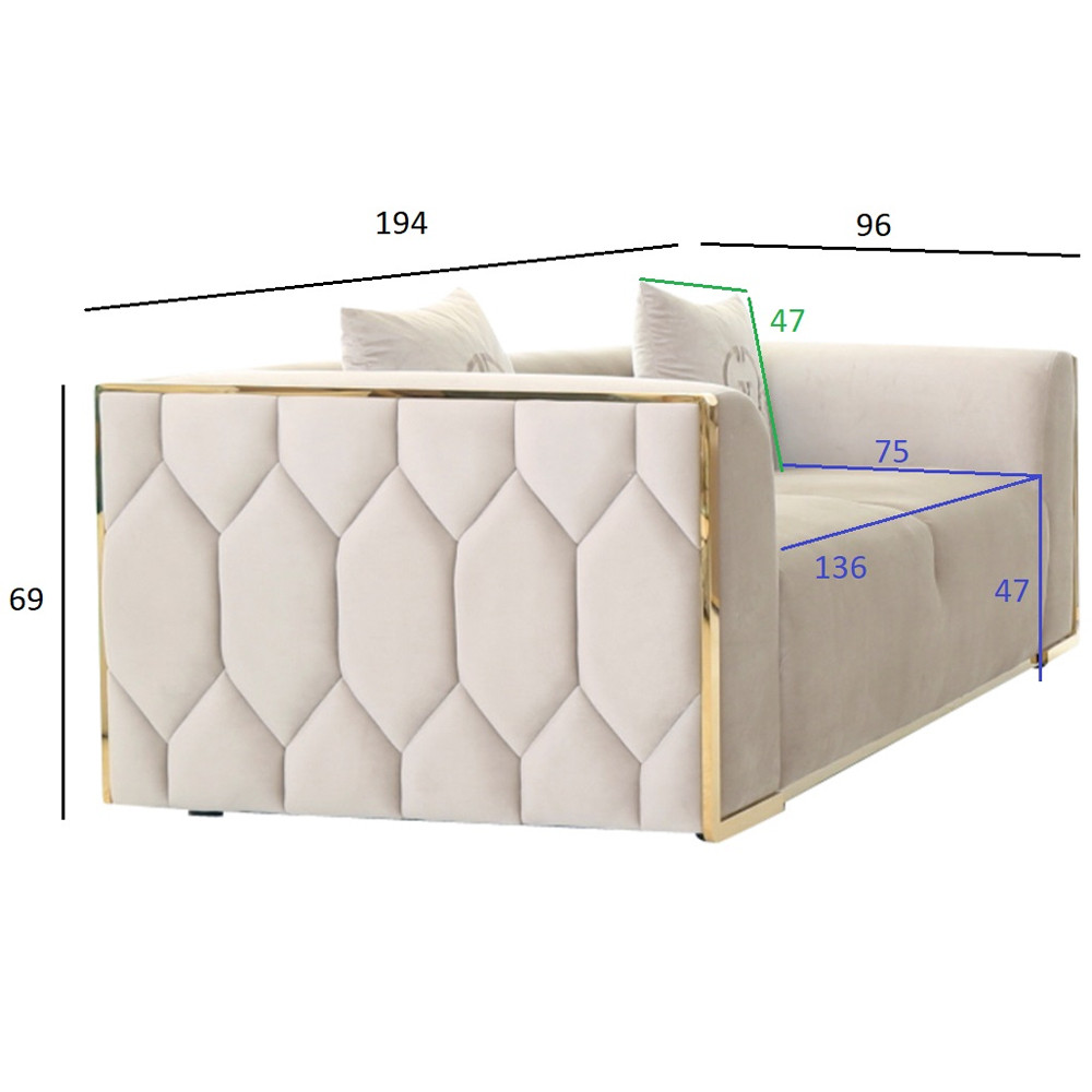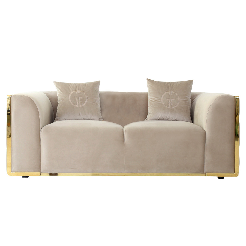 Диван двухместный бежевый с золотым каркасом Bertrude