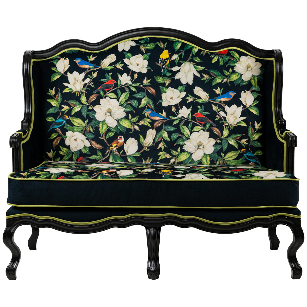 Диван двухместный из натурального бука с изображением птиц и цветов Blooming Birds