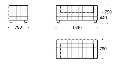 В коллекции также представлен трехместный диван, кресло и пуфы.