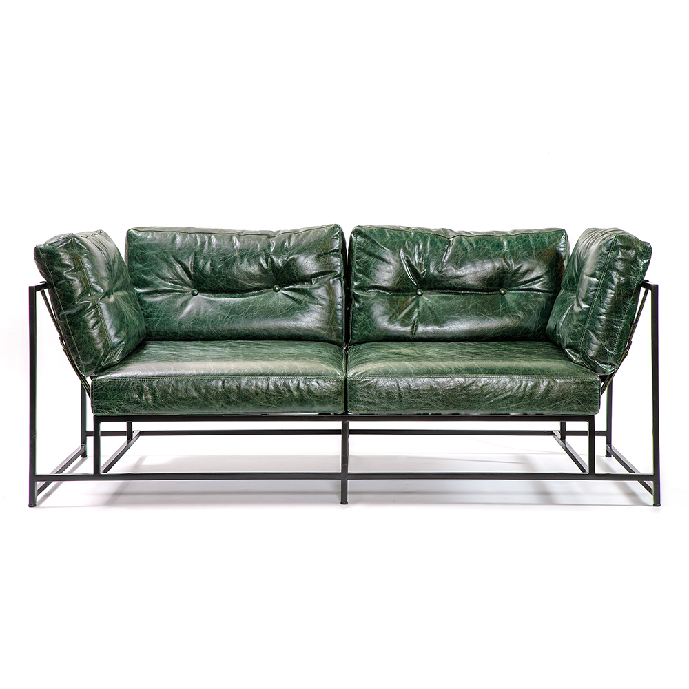 Диван Лофт Натуральная Винтажная кожа Зеленый Two Seat Encounter Leather Sofa
