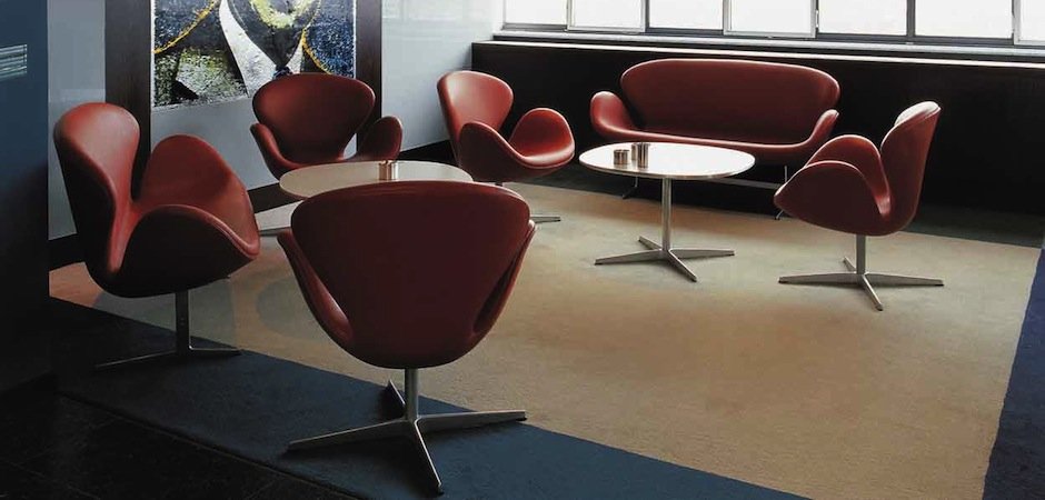 Дизайнер Арни Якобсен разрабатывал диван Swan для тех же целей, что и кресло Egg — для оформления панорамного зала на 21-ом этаже Королевского отеля в Копенгагене в 1958 году.