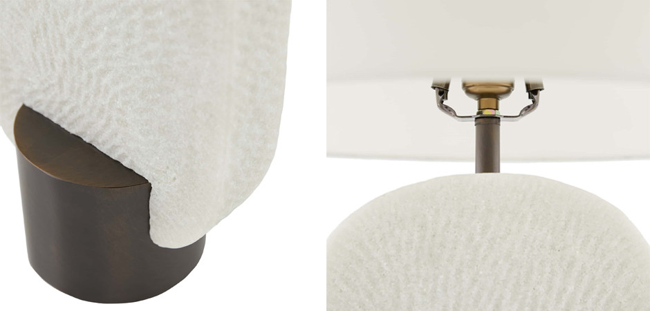 Ключевой особенностью данной модели является использование разнообразных материалов в ее конструкции. Абажур лампы выполнен из высококачественных тканей, таких как хлопок и микрофибра, обеспечивающих мягкое рассеивание света. Основание и элементы крепления сделаны из прочной стали, придавая изделию надежность и долговечность.