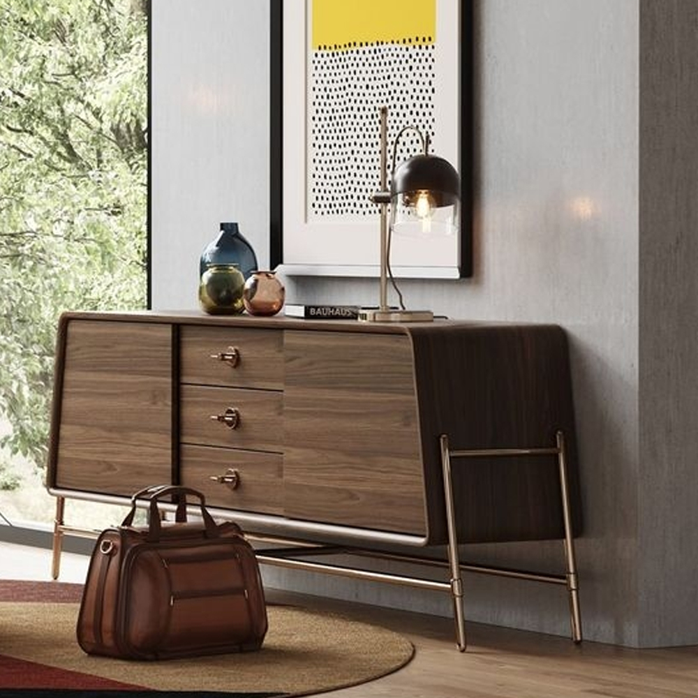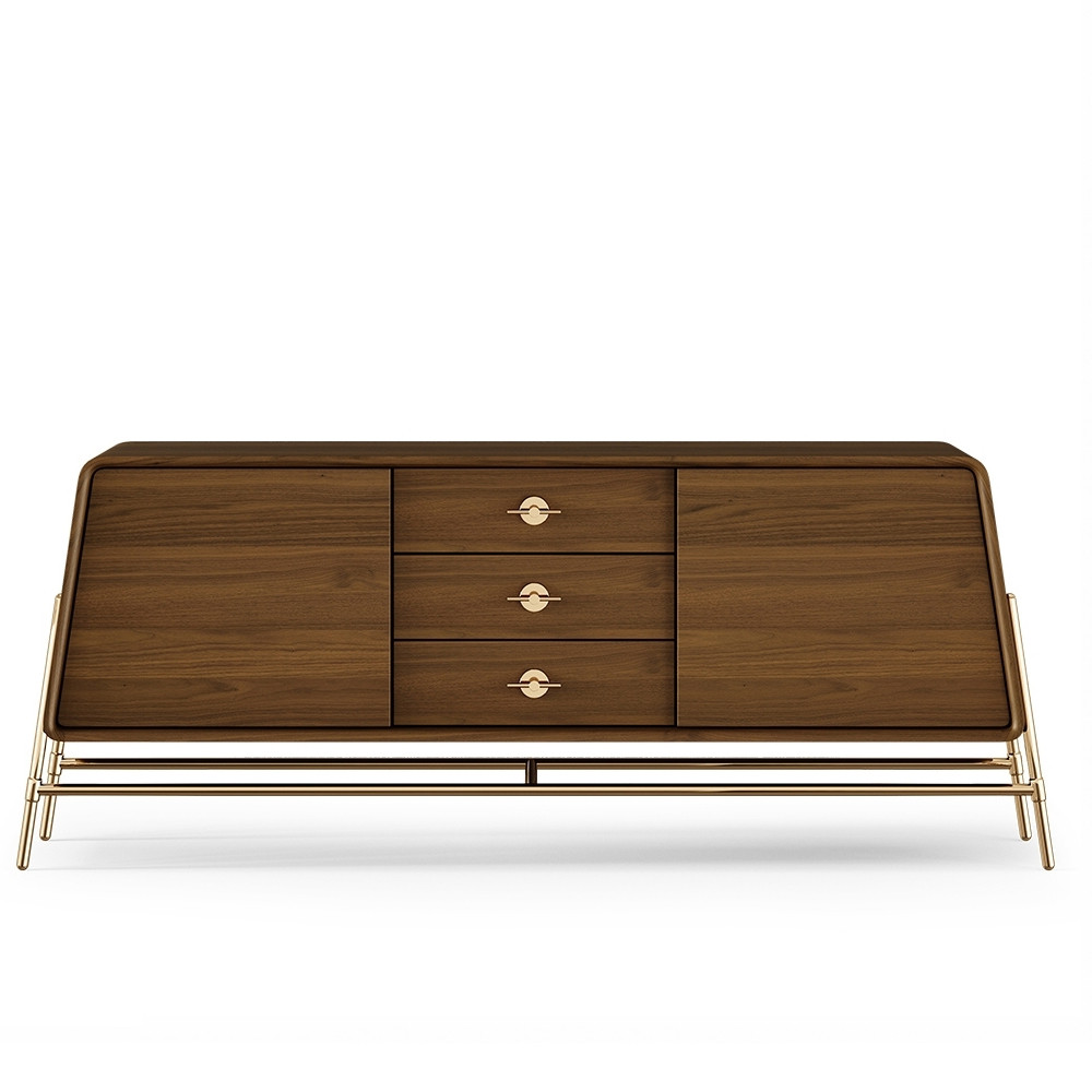 Дизайнерский комод трапециевидной формы с ручками и основанием золотого цвета Armaria