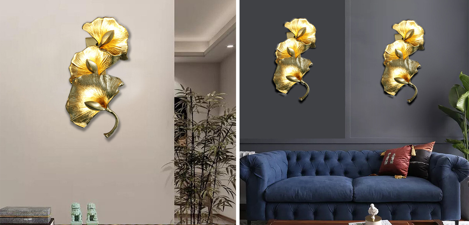 Дизайнерский настенный светильник Листья Гинкго Golden Ginkgo Leaves