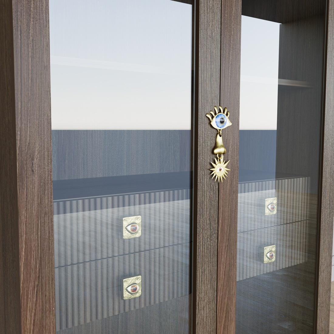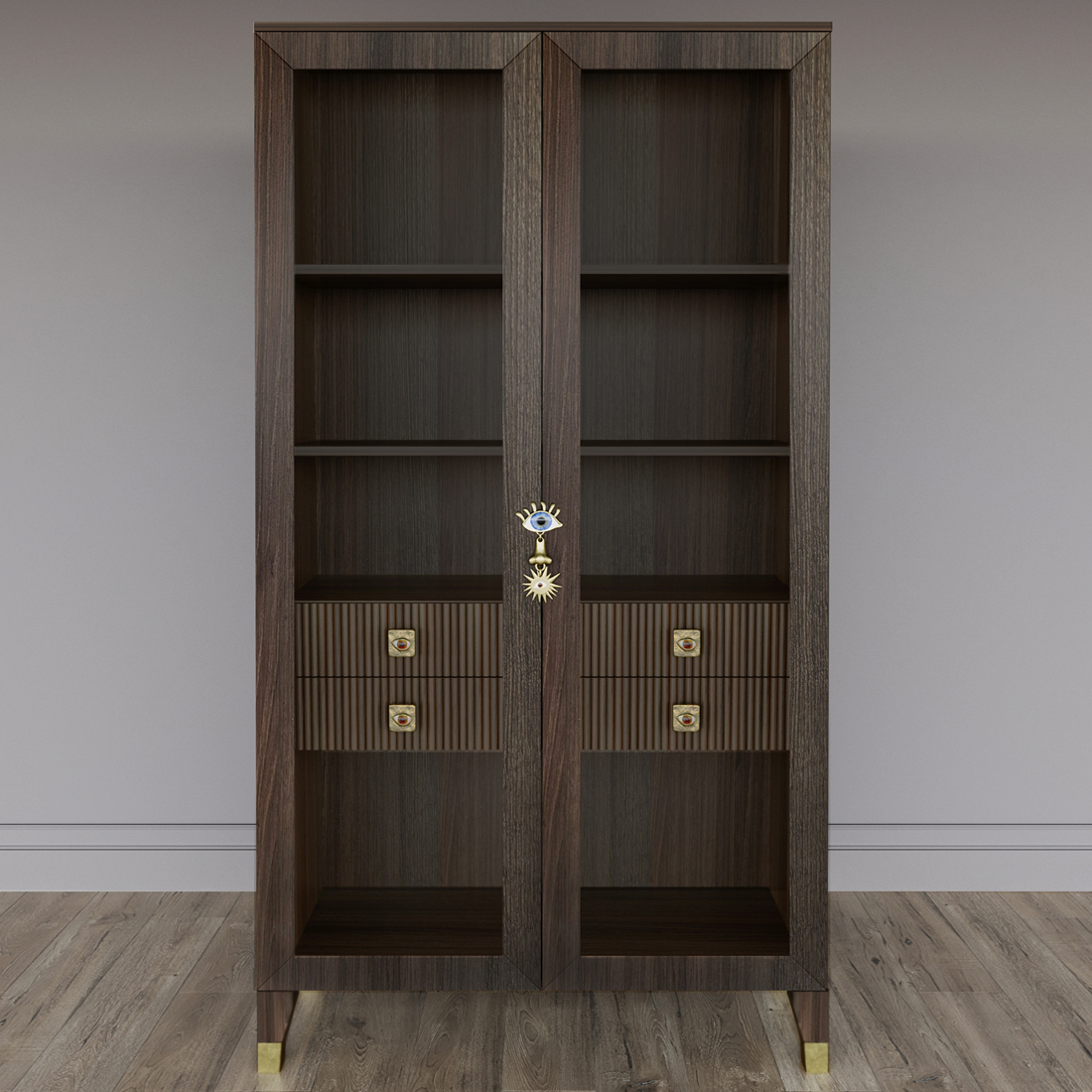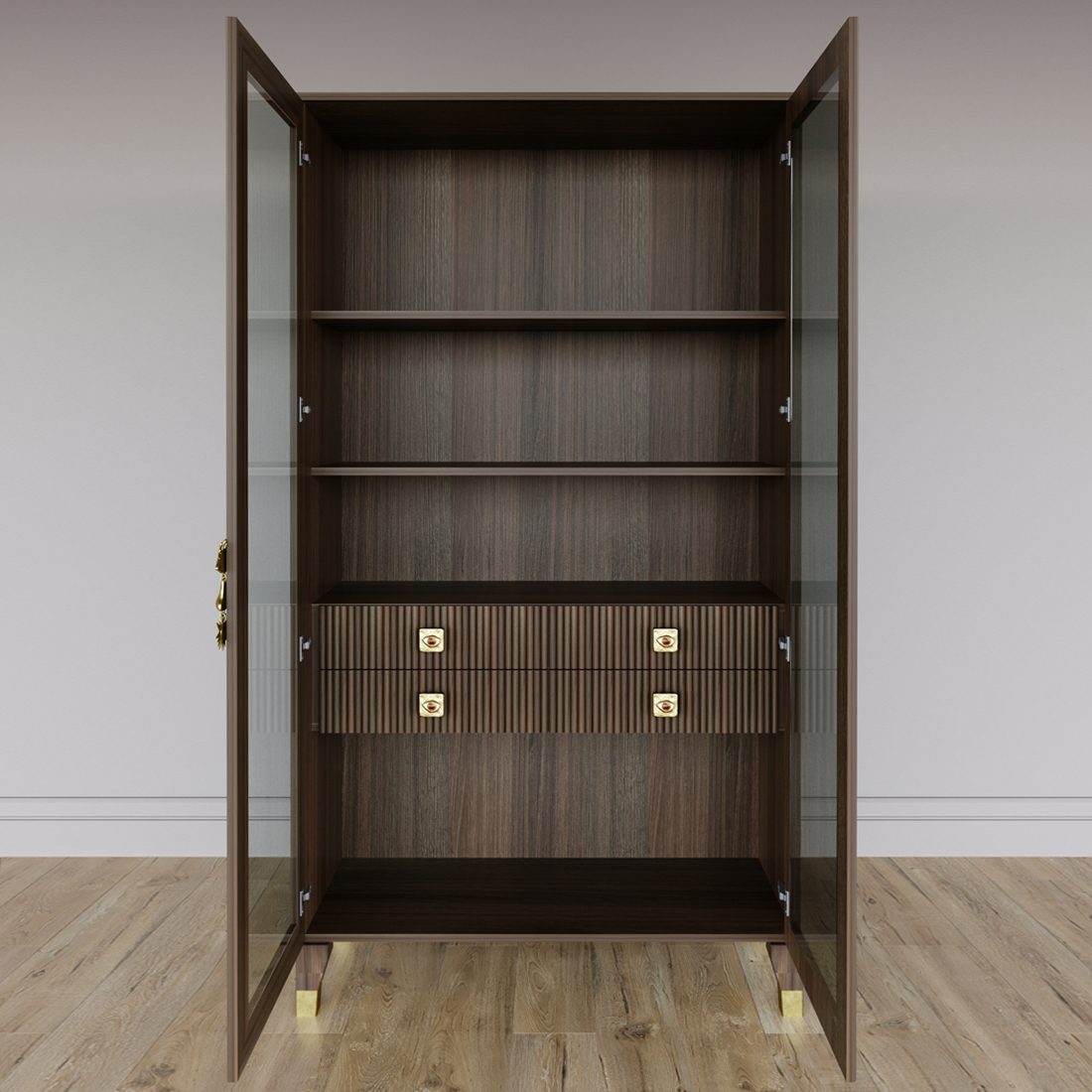 Дизайнерский шкаф витрина Elsa Dreams Walnut с 4-мя ящиками