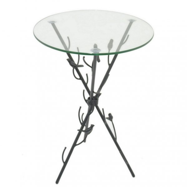 Столик выполнен из прочного стекла и дерева, что гарантирует его долговечность и устойчивость к влаге / высоким или низким температурам.