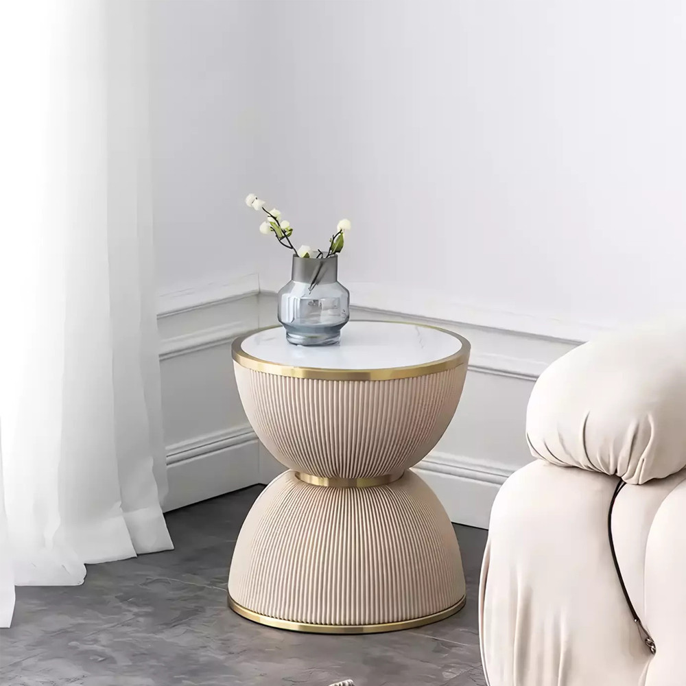 Дизайнерский журнальный стол фактурный с круглой белой столешницей Luler