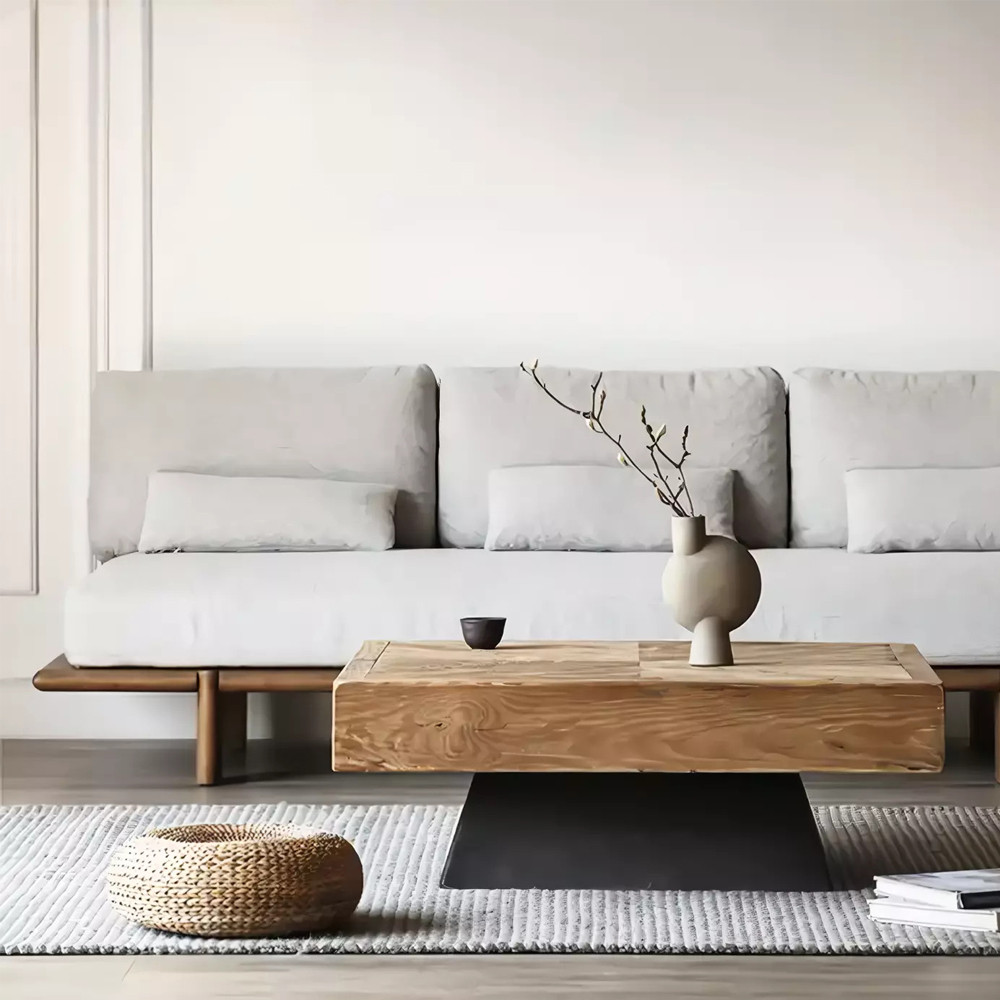 Дизайнерский журнальный стол квадратный с черным трапециевидным основанием Wokab