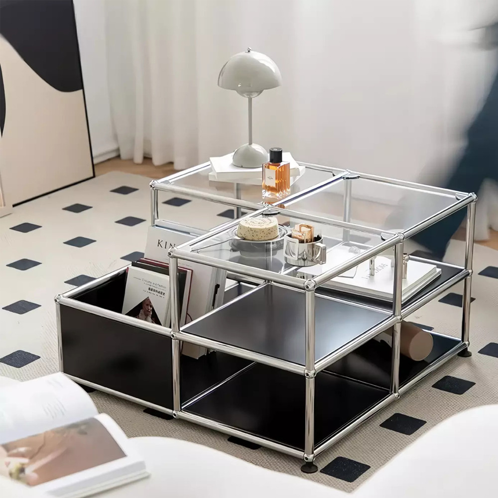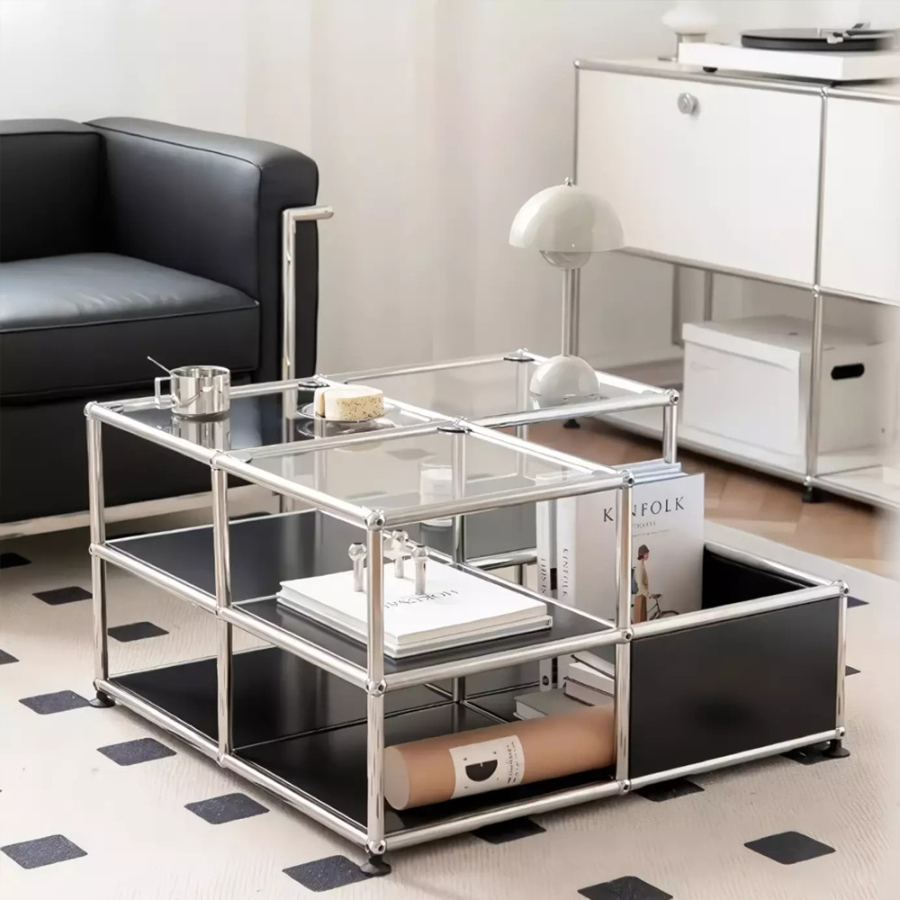 Дизайнерский журнальный стол квадратный с полками Akydy